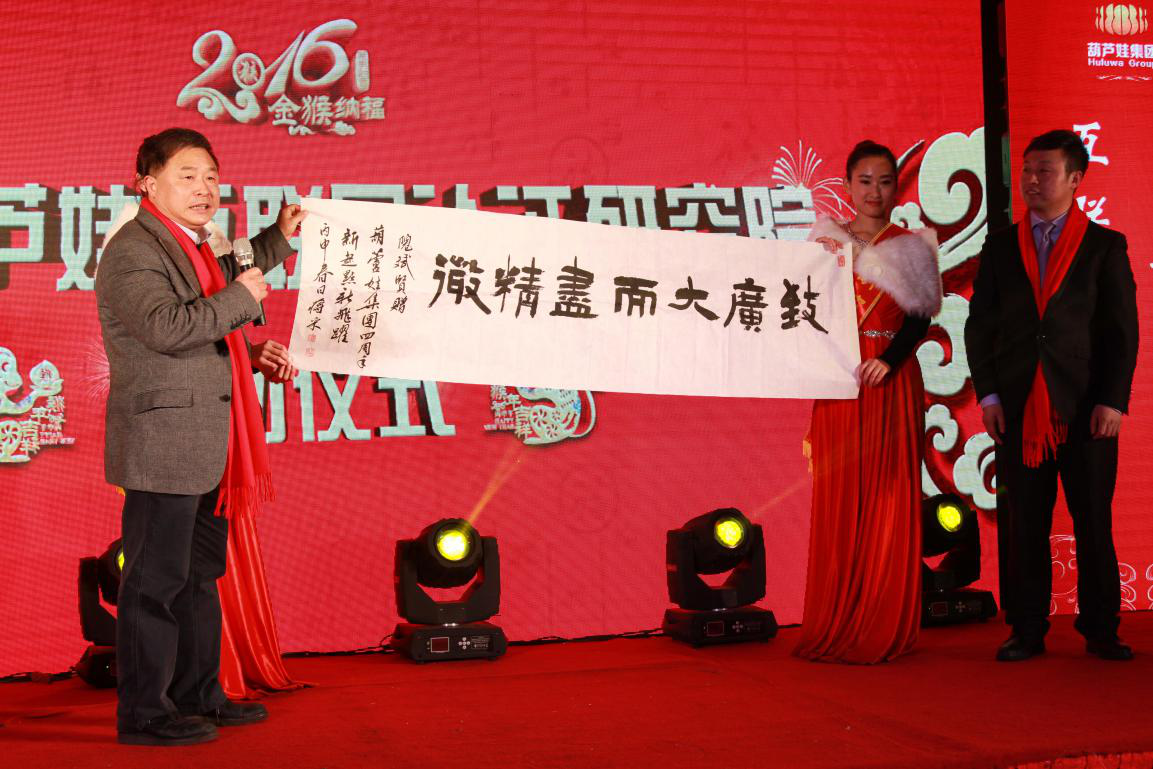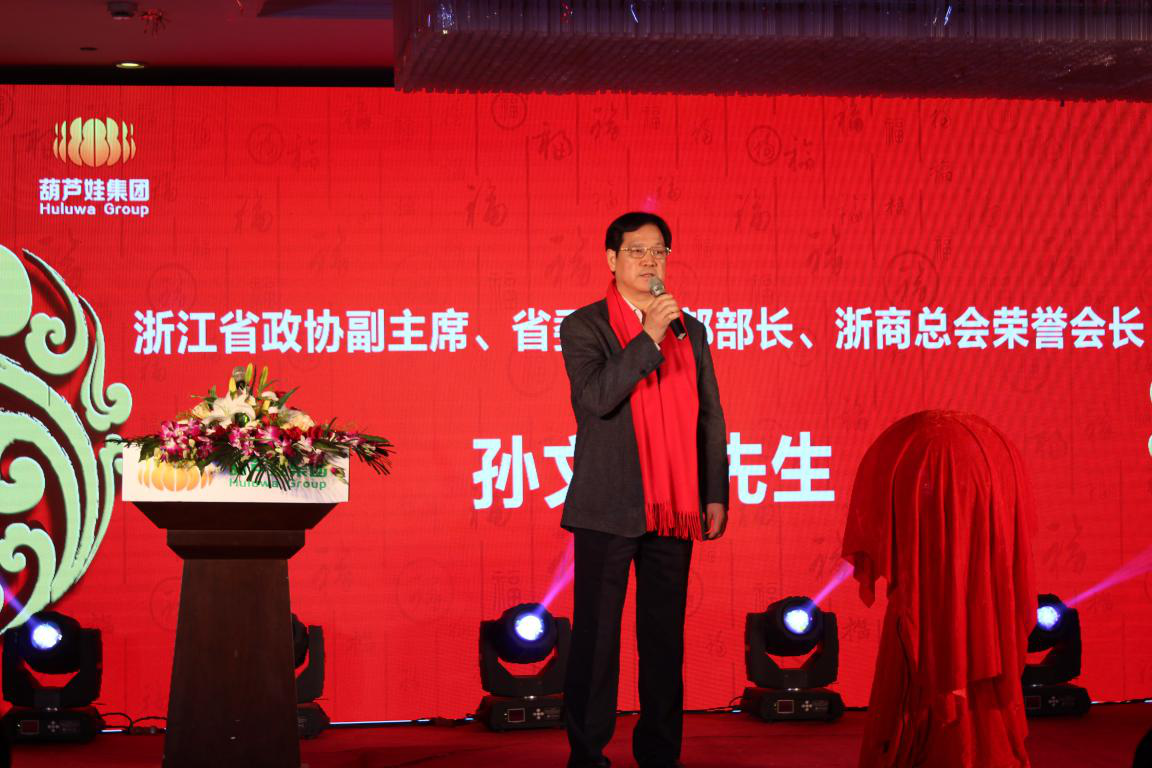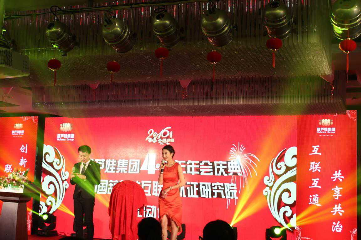 2016年1月19日,以“新跨越,新起航”為主題的“葫蘆娃集團(tuán)4周年年會(huì)慶典暨中國(guó)葫蘆娃互聯(lián)網(wǎng)認(rèn)證研究院?jiǎn)?dòng)儀式”在杭州歌江維嘉大酒店舉行,浙江省政協(xié)副主席、省委統(tǒng)戰(zhàn)部部長(zhǎng)、浙商總會(huì)榮譽(yù)會(huì)長(zhǎng)孫文友,中國(guó)美術(shù)學(xué)院原常務(wù)副院長(zhǎng)、正院級(jí)巡視員高法根,杭州市委原副秘書長(zhǎng)、世界申遺專家王水法,浙江省政協(xié)常委、浙江省社會(huì)主義學(xué)院副院長(zhǎng)隗斌賢等領(lǐng)導(dǎo)嘉賓出席,華數(shù)TV主持人張菁擔(dān)任主持。
