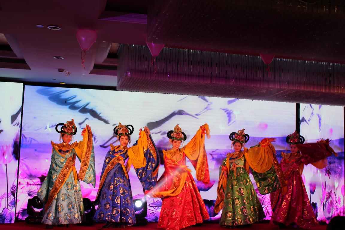 啟動(dòng)儀式之后,迎來了葫蘆娃集團(tuán)4周年年會(huì)慶祝晚會(huì),一支《大唐盛世》的開場(chǎng)舞,寓意著祖國(guó)的繁榮昌盛,也象征著葫蘆娃集團(tuán)錚錚向榮的發(fā)展之路。有曼妙的舞姿,也定少不了優(yōu)美的歌聲,本次晚會(huì)有幸邀請(qǐng)到《人間西湖》的演唱者黃麗玲女士,“山外山,樓外樓,留下浪漫愛滿湖”,黃女士一曲婉轉(zhuǎn)悠揚(yáng)的《人間西湖》,讓在場(chǎng)嘉賓仿佛置身于了仙氣繚繞的西子之畔,一曲終了,在場(chǎng)人員無不意猶未盡,黃女士又為大家獻(xiàn)上一首歡快的充滿希望的《陽光路上》,“陽光路上,無限風(fēng)光,前進(jìn)的腳步日夜兼程,不可阻擋”,黃女士?jī)?yōu)美的歌聲,讓所有人久久沉浸其中。緊接著由兩位舞者帶來舞蹈《夢(mèng)幻星空》,唯美的背景,優(yōu)雅的舞姿,詮釋了女人獨(dú)有的柔美。