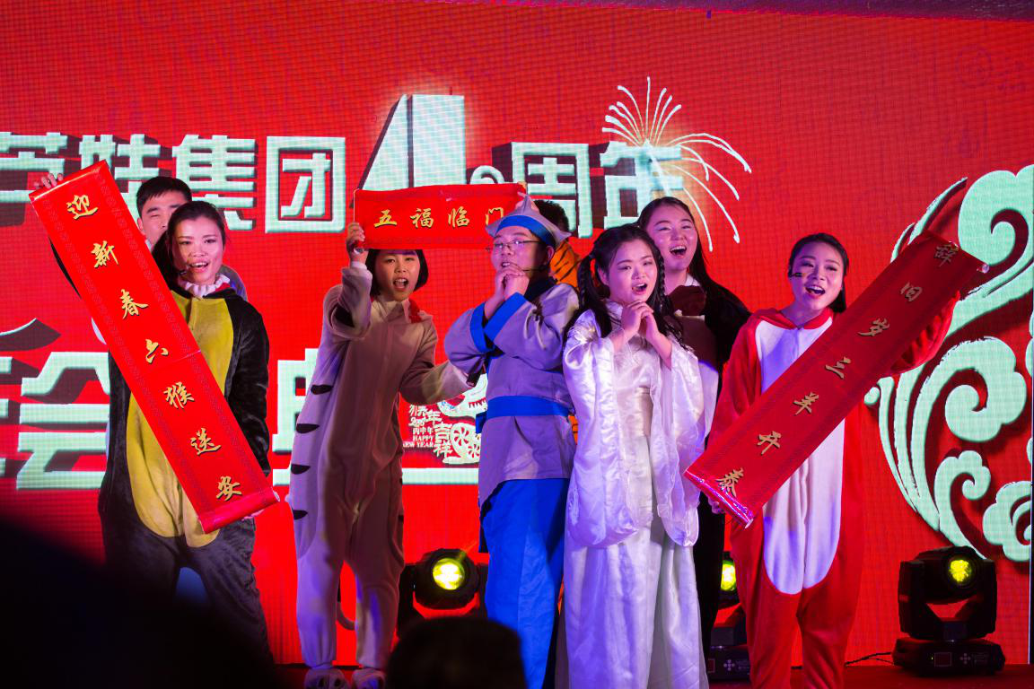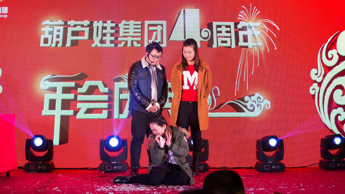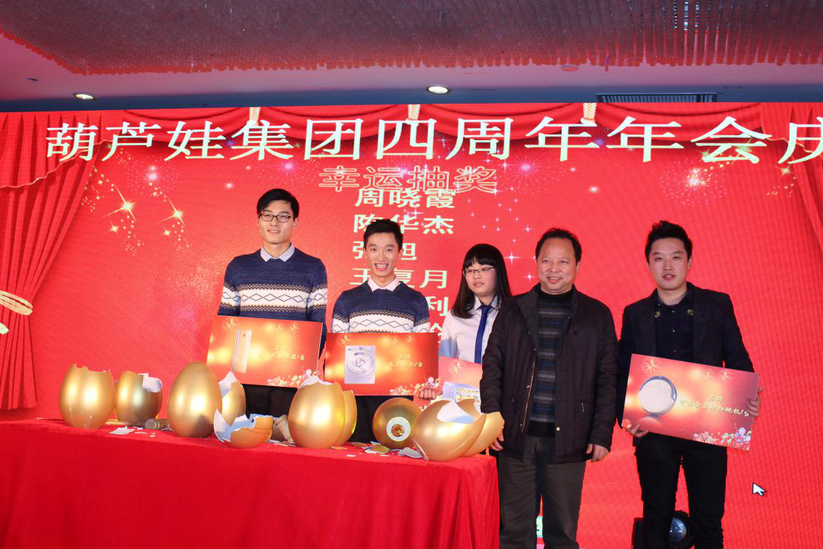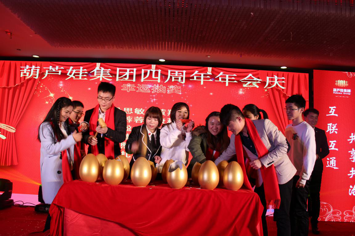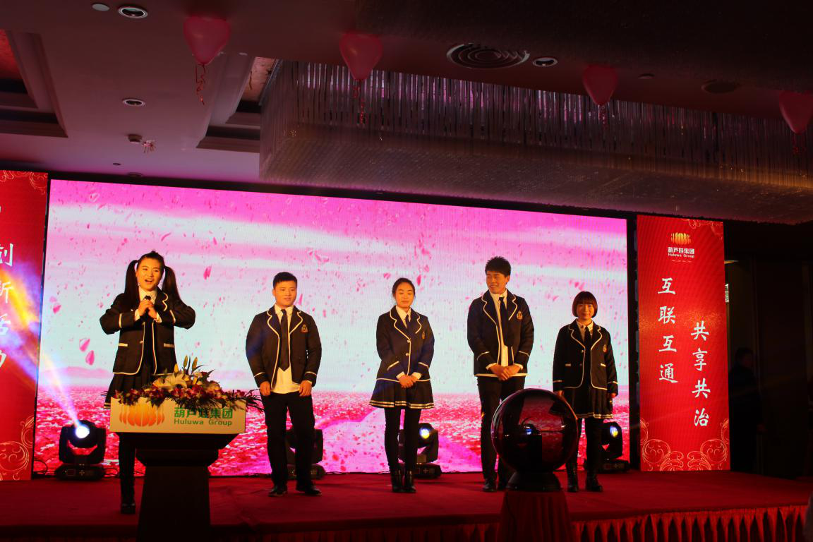 回首四年葫蘆娃取得的成績(jī),我們倍感珍惜。這些成績(jī)的取得,凝聚了各級(jí)領(lǐng)導(dǎo)的深切關(guān)懷,凝聚了各界朋友的大力支持,凝聚了合作伙伴的精誠(chéng)合作,凝聚了全體葫蘆娃人的不懈奮斗!晚會(huì)正式開始前,宴會(huì)廳LED屏幕上播放著精心制作的葫蘆娃集團(tuán)員工拜年視頻。2015年對(duì)葫蘆娃來說是極不平凡的一年,經(jīng)過全體葫蘆娃人日日夜夜的共同拼搏,除杭州總部的浙江葫蘆娃以外,我們成立了江西葫蘆娃網(wǎng)絡(luò)技術(shù)有限公司,江西葫蘆娃電子商務(wù)有限公司,北京葫蘆娃會(huì)務(wù)有限公司!實(shí)現(xiàn)了在認(rèn)證、電商、會(huì)務(wù)三個(gè)領(lǐng)域的全面發(fā)展。在互聯(lián)網(wǎng)認(rèn)證領(lǐng)域,葫蘆娃已經(jīng)是中國(guó)互聯(lián)網(wǎng)認(rèn)證行業(yè)龍頭企業(yè);在電商領(lǐng)域,葫蘆娃成為中國(guó)電子商務(wù)服務(wù)行業(yè)十佳企業(yè),并開拓了一個(gè)全新的輻射全國(guó)的電商人才認(rèn)證平臺(tái);在會(huì)務(wù)領(lǐng)域,我們與北京中國(guó)國(guó)展,與廣州廣交會(huì)簽訂了戰(zhàn)略合作協(xié)議!同時(shí),在江西玉山高鐵電商園,葫蘆娃大廈實(shí)現(xiàn)封頂!視頻中講述了葫蘆娃集團(tuán)2015年的發(fā)展,展現(xiàn)了葫蘆娃集團(tuán)的辦公環(huán)境、葫蘆娃大廈、各部門的員工風(fēng)采,匯聚了大家對(duì)葫蘆娃集團(tuán)2016年的期待和祝福。