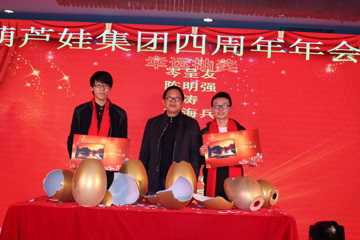 葫蘆娃集團(tuán)4周年年會(huì)慶典暨中國(guó)葫蘆娃互聯(lián)網(wǎng)認(rèn)證研究院?jiǎn)?dòng)儀式,在各界領(lǐng)導(dǎo)的祝福,全體葫蘆娃人的關(guān)注下圓滿結(jié)束。讓我們相約2016年!辭舊歲,我們豪情滿懷,迎新年,我們信心百倍。在2016年這個(gè)既充滿挑戰(zhàn)又蘊(yùn)藏機(jī)遇的環(huán)境下,葫蘆娃將創(chuàng)造更加輝煌、更加燦爛的明天!